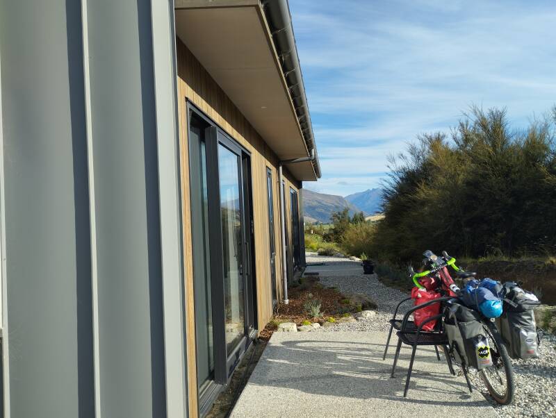 Queenstown Airport was really easy to escape from - build the bike outside the terminal, get on and pedal into town, about 15 miles to a pre-booked Airbnb to take a couple of nights' post- flight rest!
