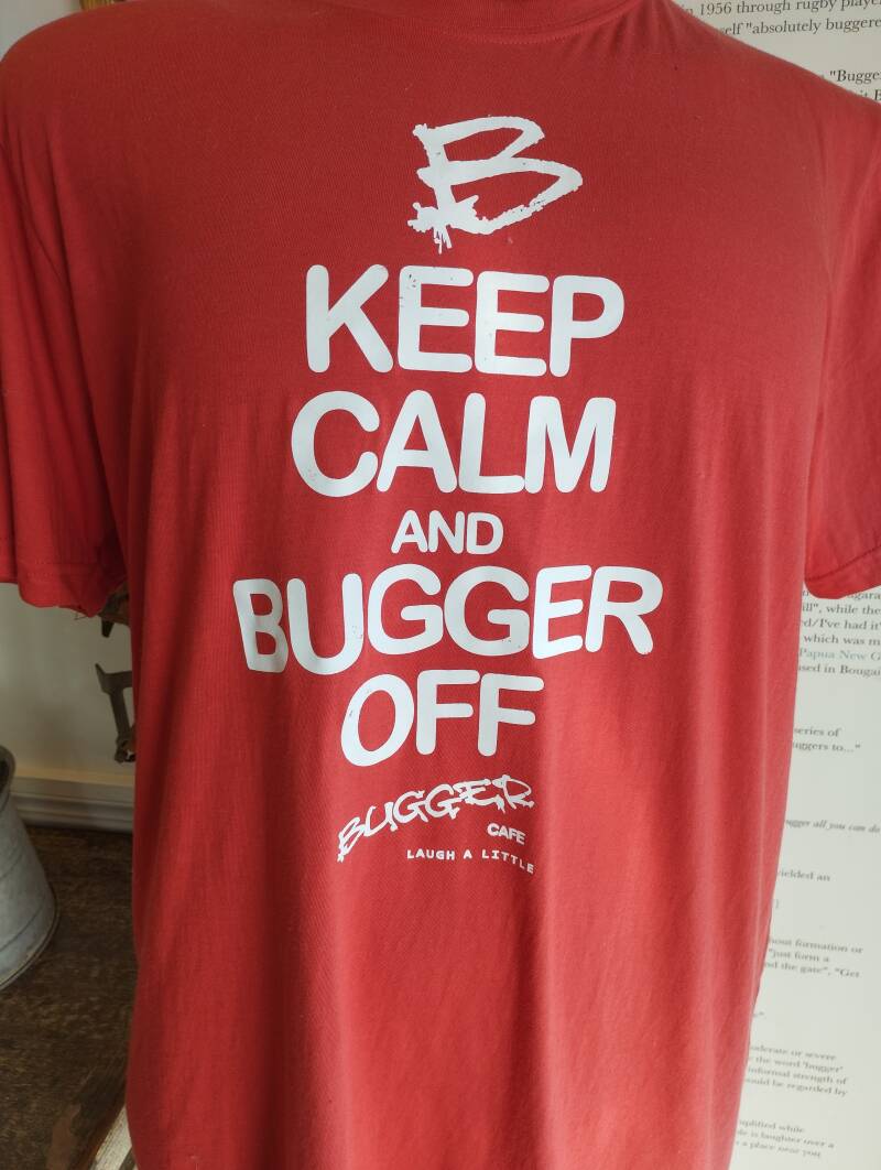 Above - a cafe called "Bugger Cafe" in Pipiroa sold these tee-shirts. Inappropriate maybe, but they "make you laugh a little"!