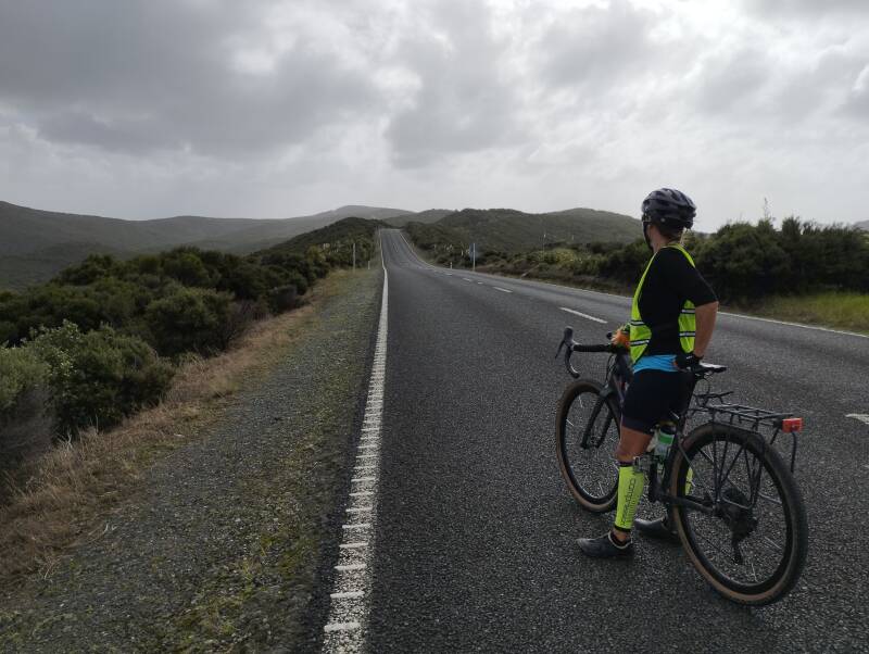 ABOVE: Molly 'spreads her wings' on route to Haast. (sometimes you have to entertain yourself with long days on the pedals!!)