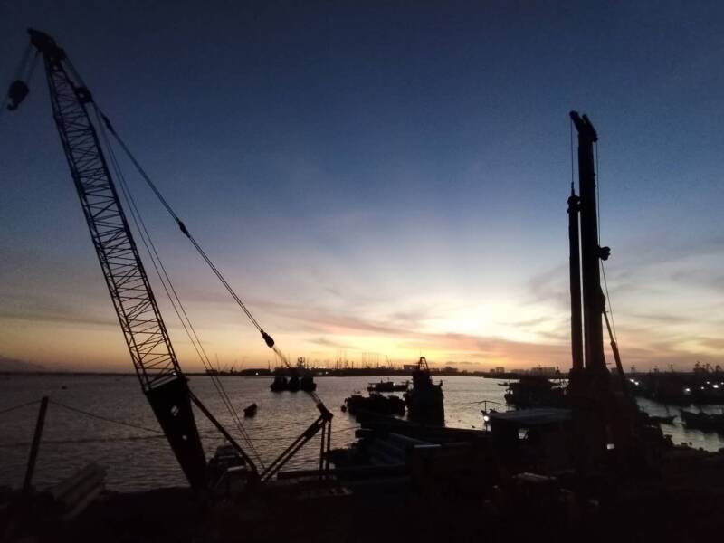 ... a noisy working harbour complete with pile-driver (below) !!