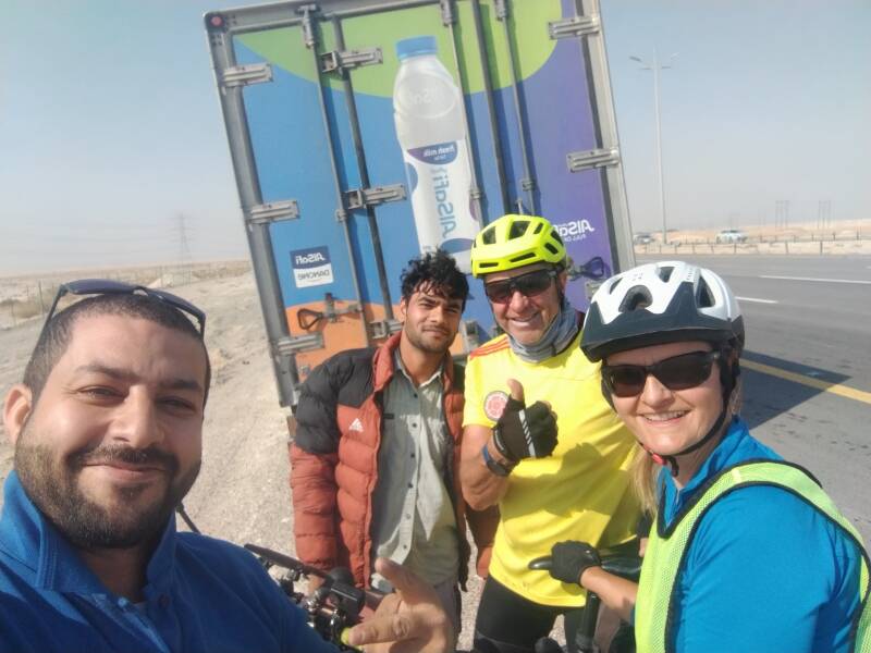 In Saudi Arabia we were AMAZED at the number of people who stopped to offer help, hospitality, food and water.